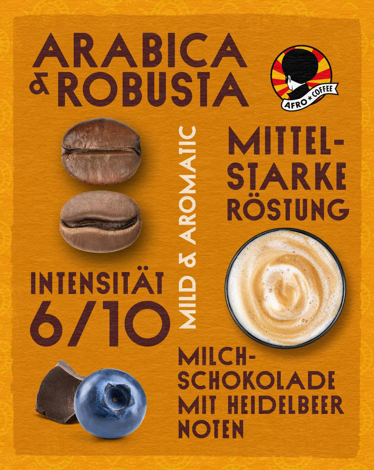 Mild & Aromatic: Arabica und Robusta Sorten in harmonischer Synergie. Die mittelstarke Röstung entfaltet einen runden Körper mit dezent blumigem Geschmack.