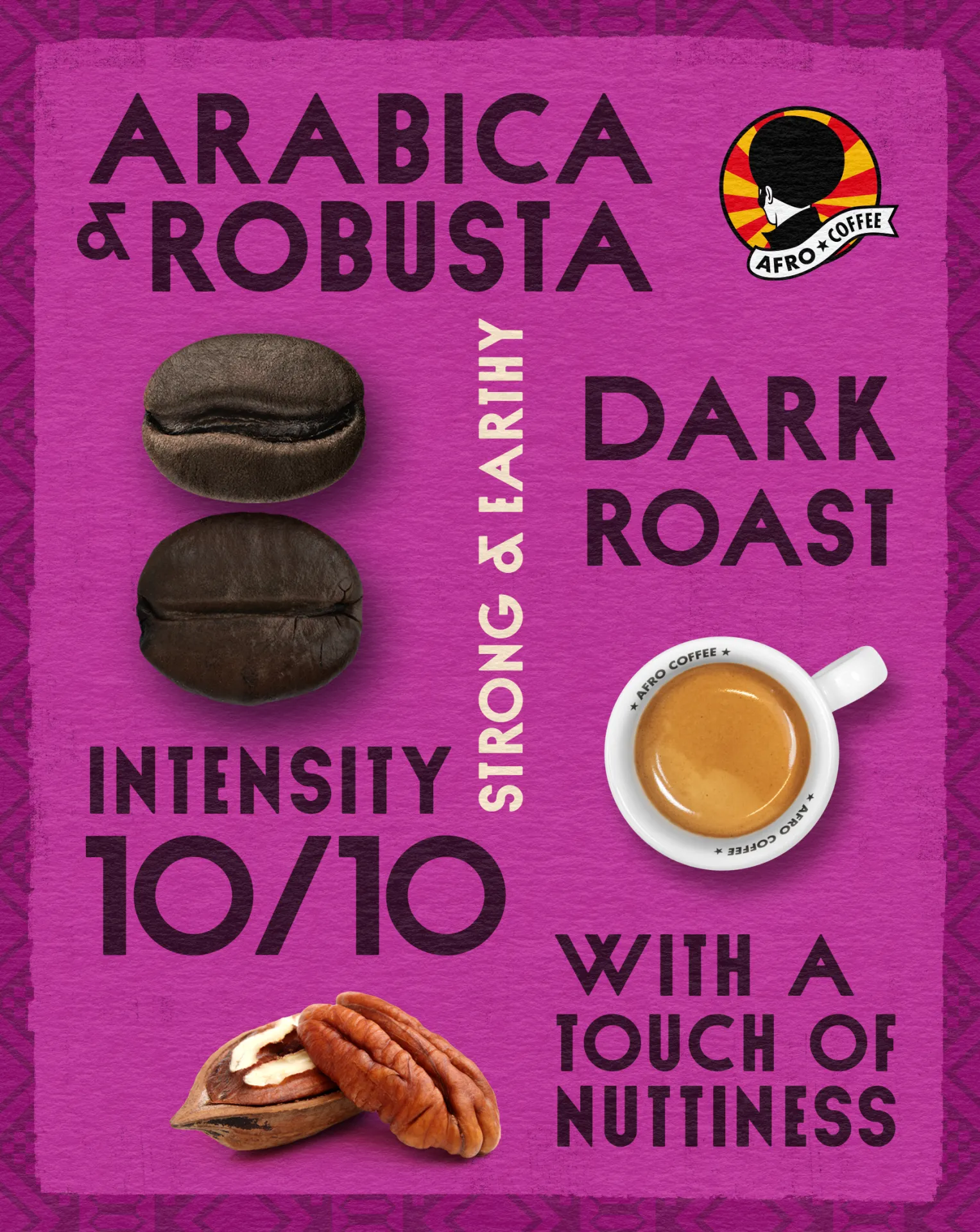 Urwüchsige Kraft trifft auf verhaltene Süße, wenn sich feinste Arabica und Robusta Sorten in dieser dunkel gerösteten Mischung vereinigen.