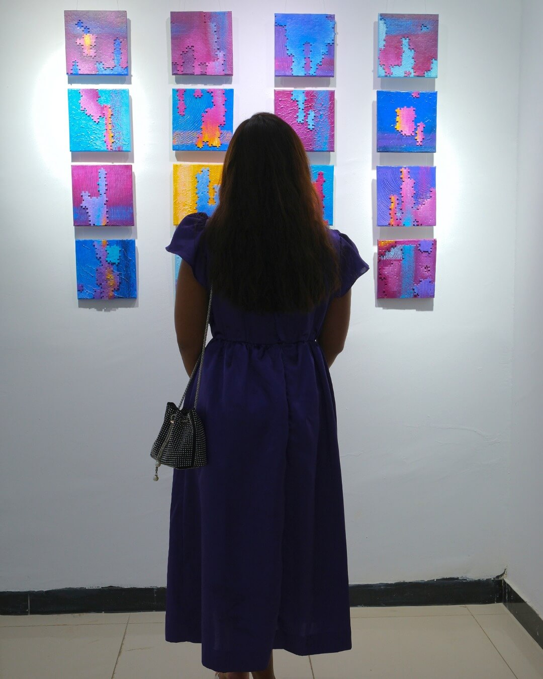 Malaikas Ausstellung war zugleich intim und weitläufig – eine Reflexion über Identität, Bewegung und die leisen Transformationen, die uns prägen. In Deutschland geboren und heute in Äthiopien ansässig, arbeitet sie an der Schnittstelle von Kulturen und Zeitlinien. Ihre Werke fangen die Spannung von Ankunft und Rückkehr ein, das Gewicht der Erinnerung und die Suche nach Kohärenz in einer fragmentierten Welt.